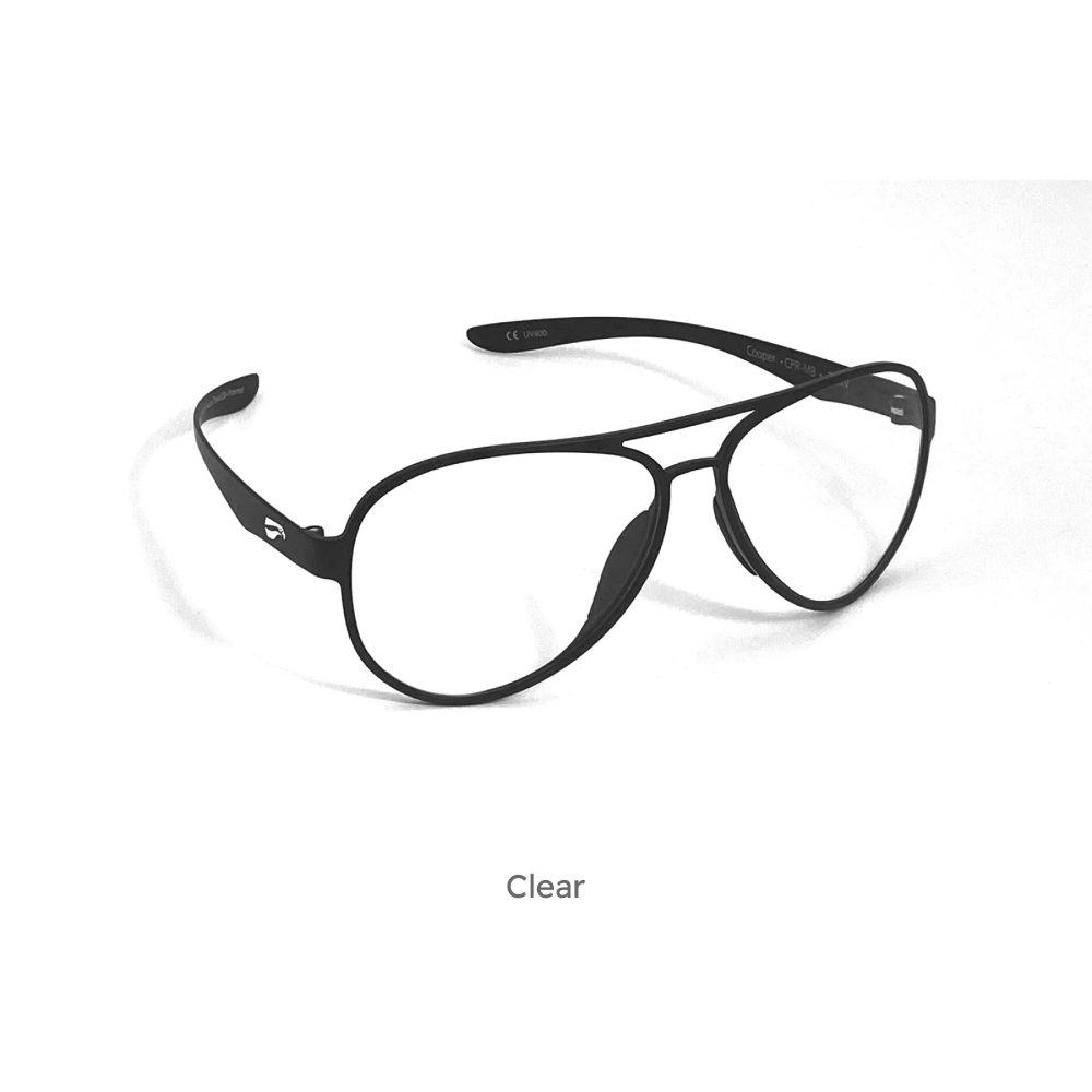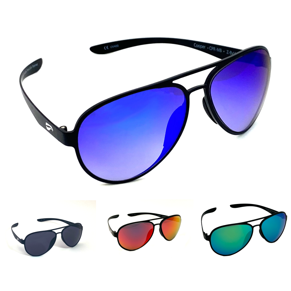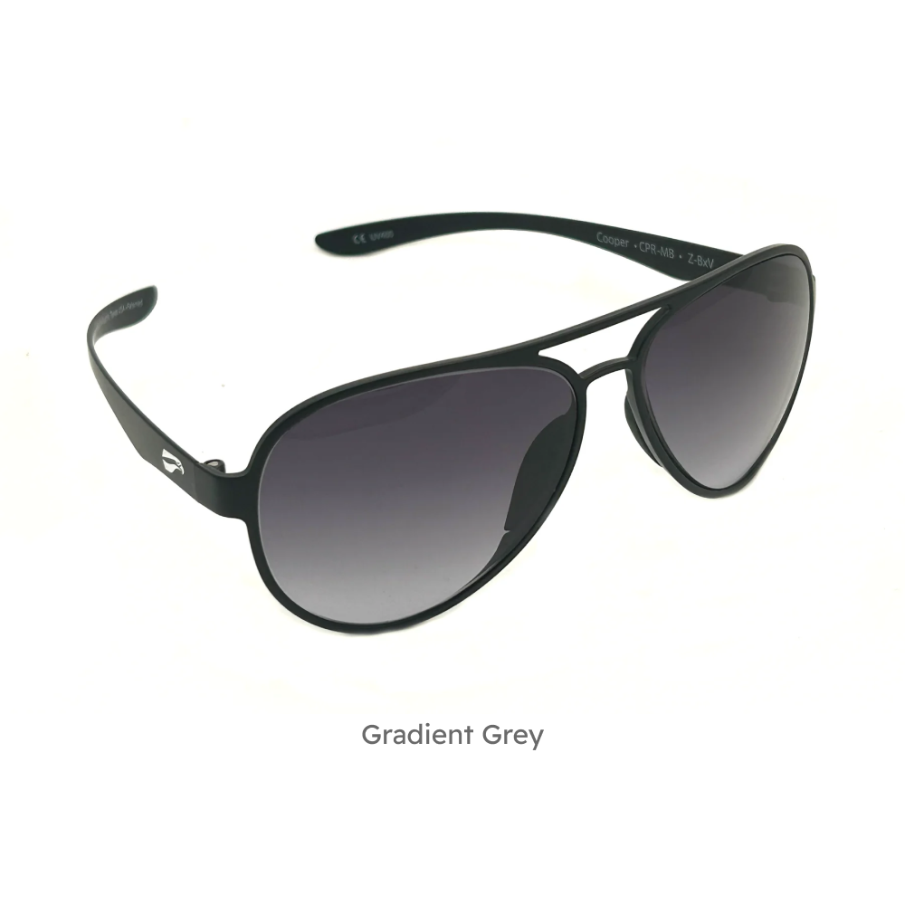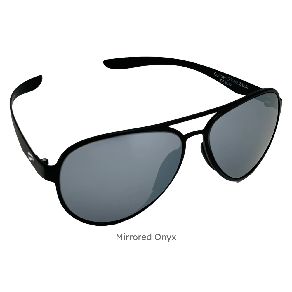 Cooper Aviator sunglasses are engineered to be amazingly comfortable with a helmet or headset. Designed for those with medium to large size heads and faces. With a frame front and temples made of Resilamide -- a material that is primarily used in aerospace because it is super light and flexible, yet virtually unbreakable.