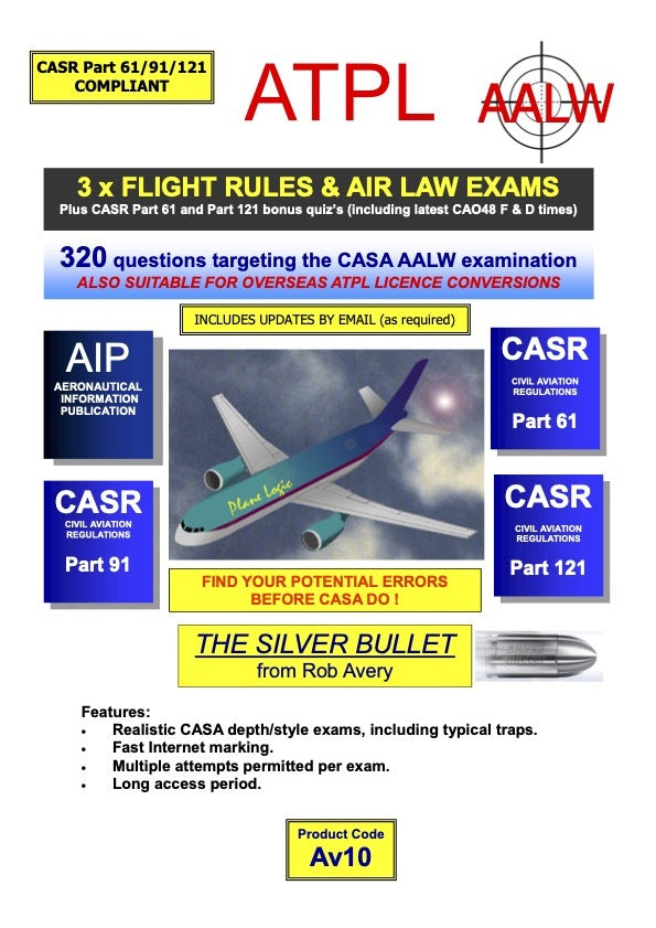 This product contains 3 typical ATPL Air Law practice exams to focus you on the type/depth/style of question you can expect in the real exam. There is also a bonus series of exam quiz modules focussing on the CAO's specifically. CAO questions typically form a large portion of the CASA ATPL Law exam.