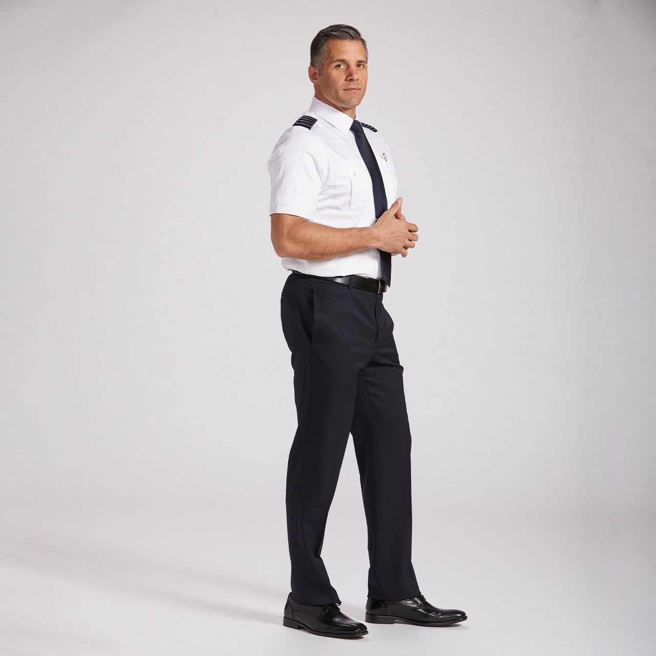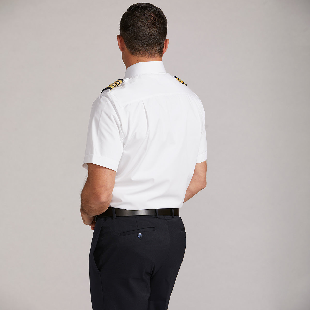 The Fitted style pilot shirt is slimmer throughout the shoulders, arms, chest and belly. Broad shouldered customers commonly find the Fitted to be too narrow.