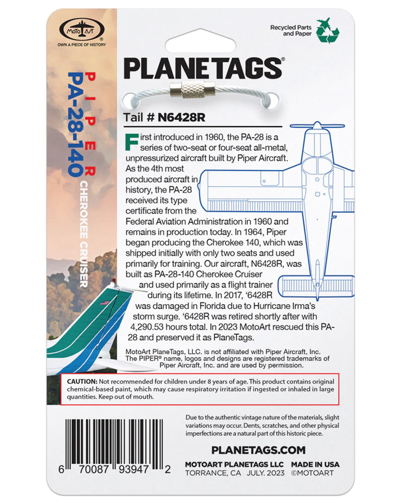 Piper Aircraft, known for its long history of producing iconic airplanes, has played a major role in shaping general aviation by introducing innovative aircraft designs that have made flying accessible for every type of pilot. MotoArt is honored to partner with Piper Aircraft to bring you a trio of PlaneTags that pay homage to 85+ years of aviation history. Introducing the Piper Aviation PlaneTags series, beginning with the PA-28 Cherokee, PA-30 Twin Comanche, and PA-36 Pawnee Brave.