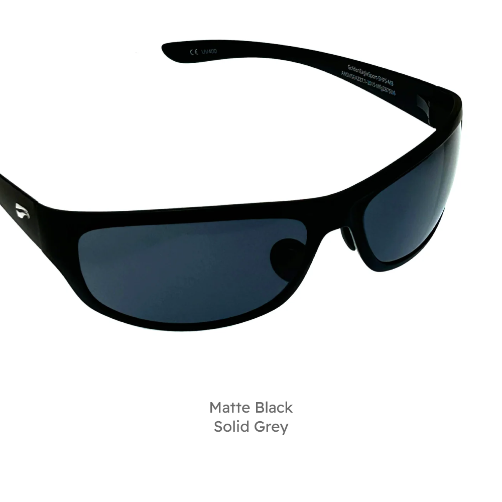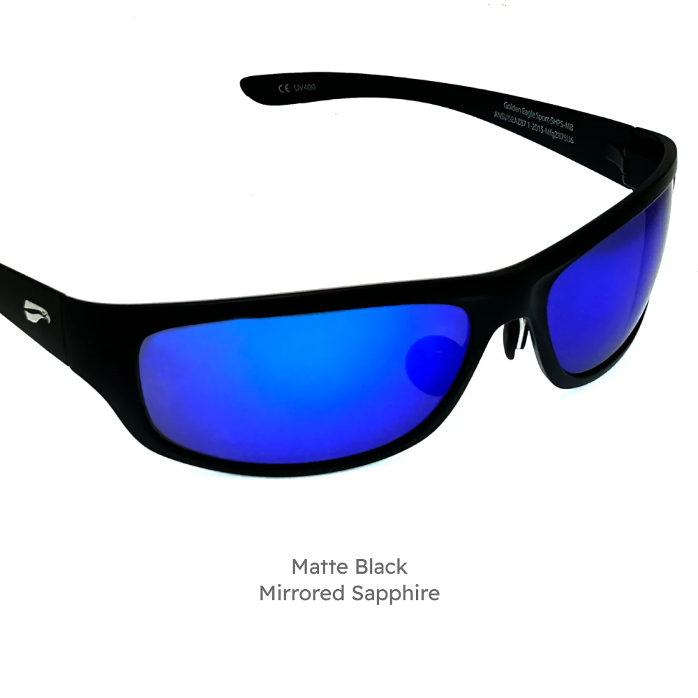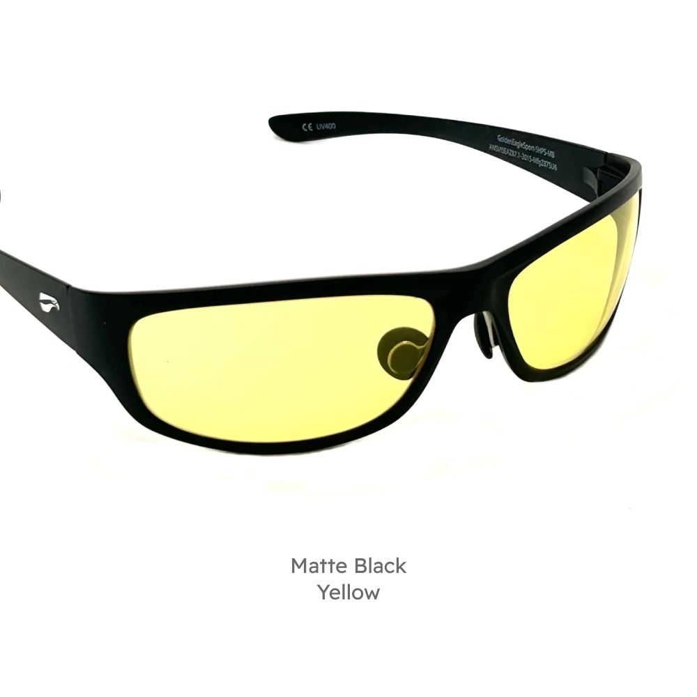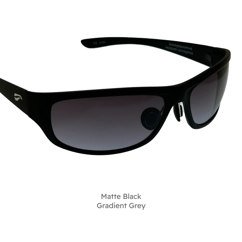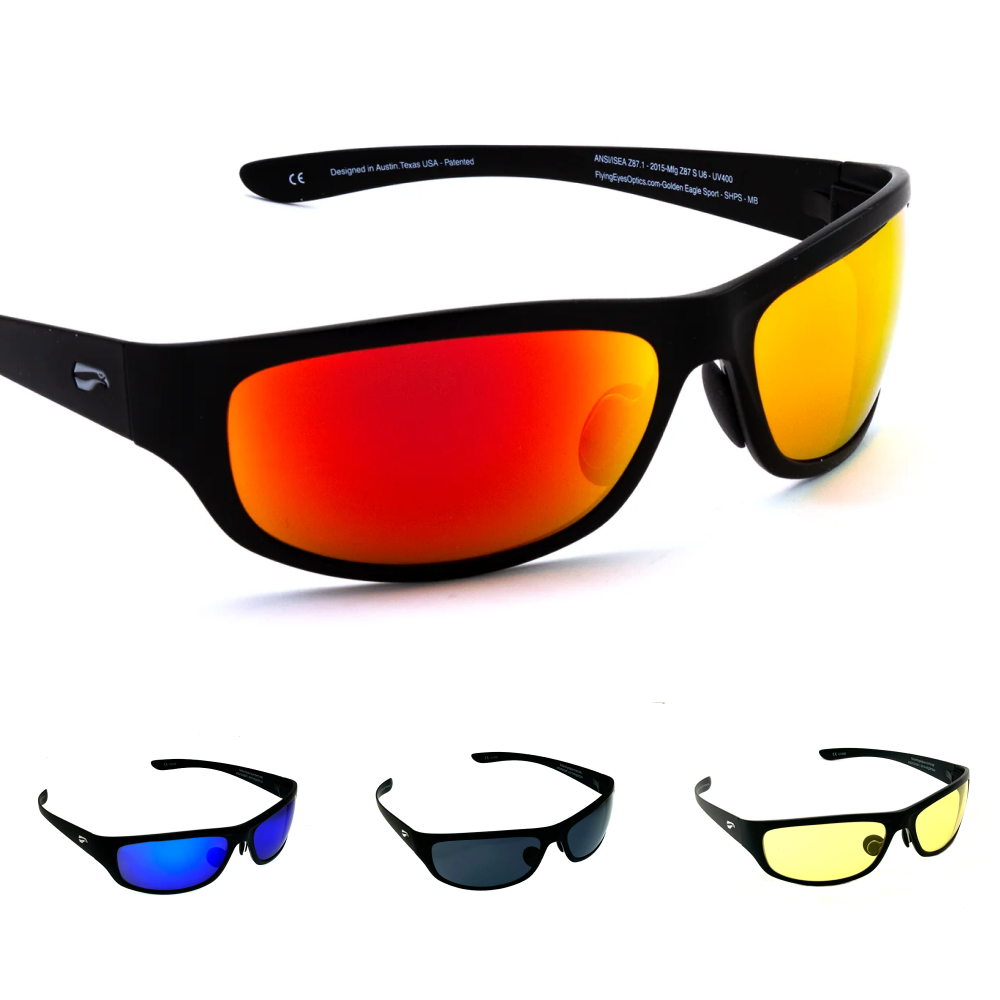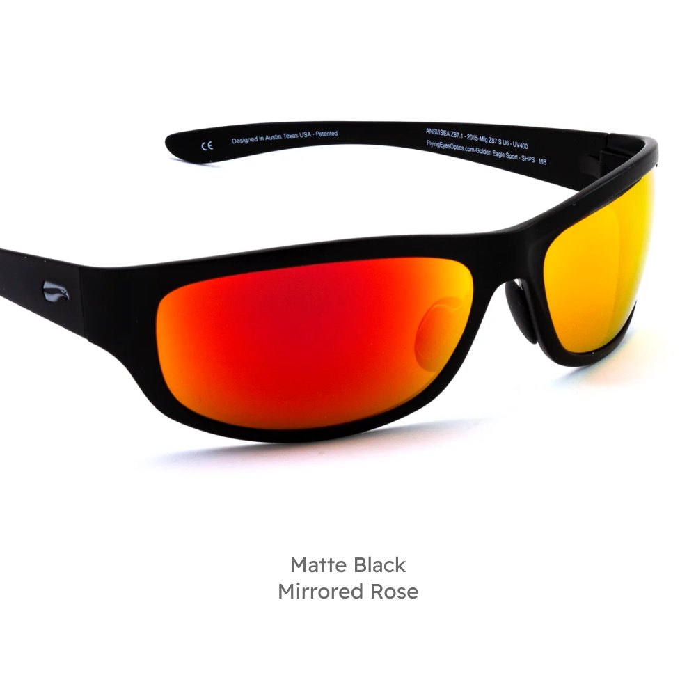 The Golden Eagle Sport glasses offer our highest lens curvature to wrap around your head and offer the most optical coverage out of any of our glasses.