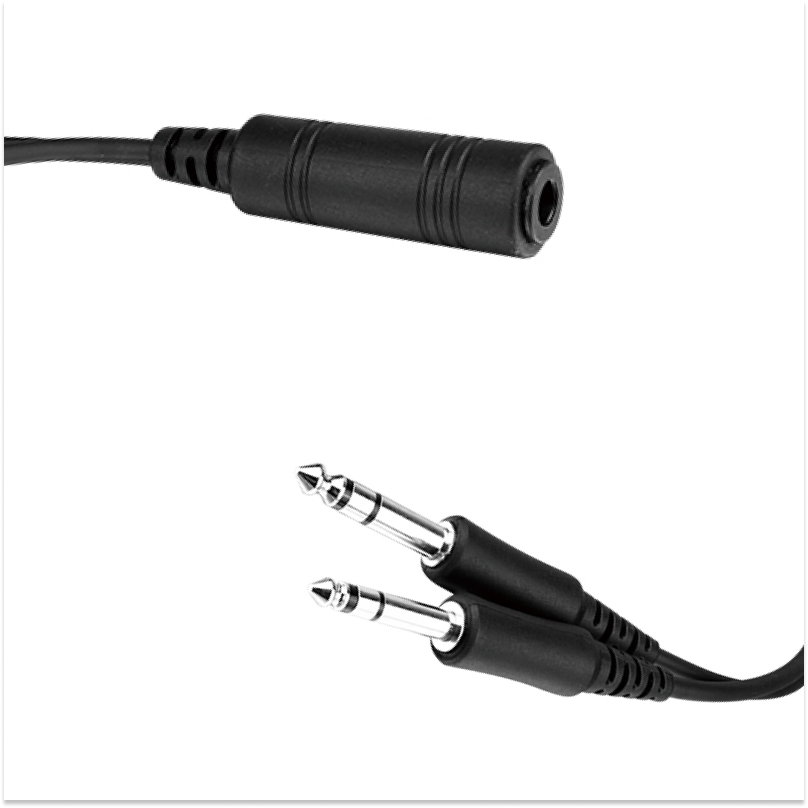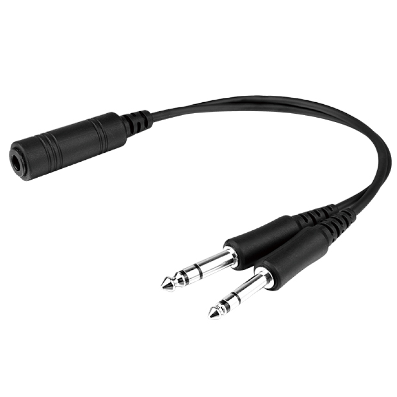 If you have a headset with the single Helicopter/U174 plug and would like to use it in an aircraft that has the standard General Aviation/Twin Plug socket, then this is the adaptor you need.
