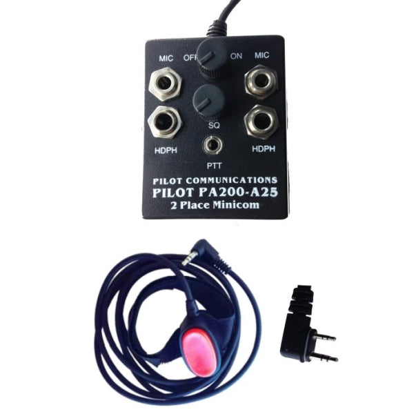 Portable Voice Activated Aviation Intercom – same as the PA200 but designed to plug straight into an Icom A25 & A16 handheld transceiver without requiring a headset adapter, includes PTT switch.