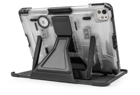 The PIVOT A32A is the newest and thinnest case from PIVOT yet, with updated design specifically for the iPad Pro 11-inch (M4). Connect the A32A case quickly and securely to mounts and accessories using the patented PIVOT universal mounting system. Be confident with excellent 360-degree protection from drops, impacts, and scratches. The upgraded PIVOT Folio Cover provides full-coverage screen protection when in transit and increased impact resistance on corners and edges. Additionally, the Folio Cover offers quick-viewing support in landscape orientation with a selection of viewing positions. Use the Folio Cover in combination with the PIVOT Kickstand for viewing with enhanced stability and a wide range of adjustable viewing angles. The updated PIVOT Kickstand is thicker and reinforced with internal ribs and locking tabs for increased strength and offers 120-degrees of adjustability in landscape orientation, as well as table-top viewing in both landscape and portrait orientation.